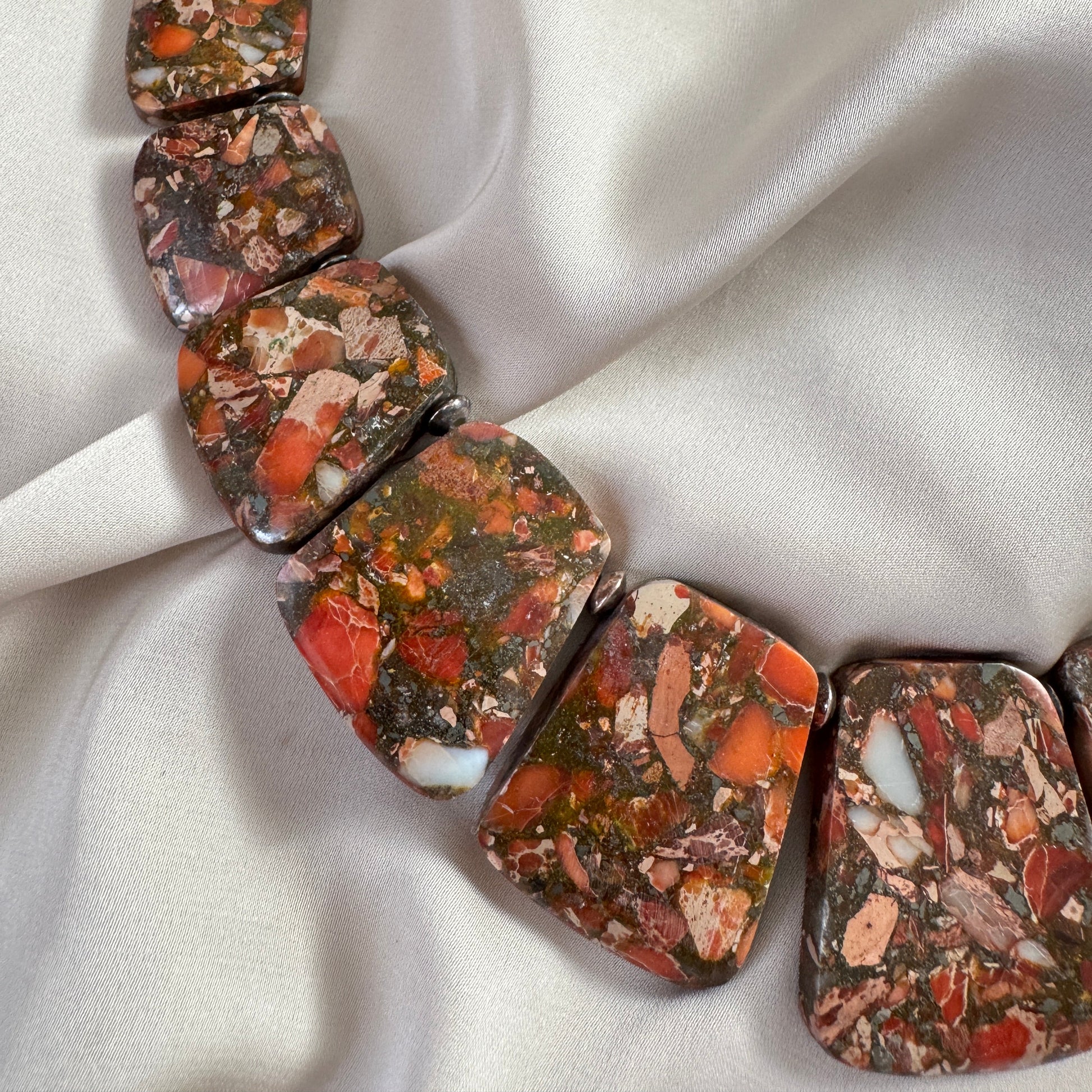 Den varma orange tonen signalerar kreativitet, livskraft och mod. Det här är halsbandet för kvinnan som vågar ta plats – men gör det med stil.