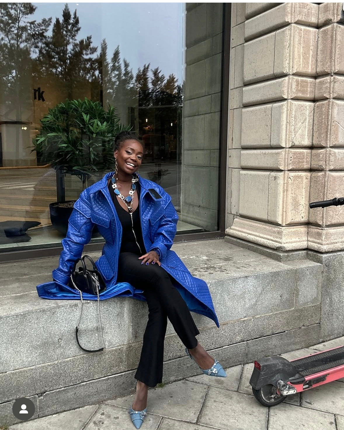 Renaida bär halsband och örhängen från Design by Brandeby – smycken som förenar styrka, själ och tidlös elegans.