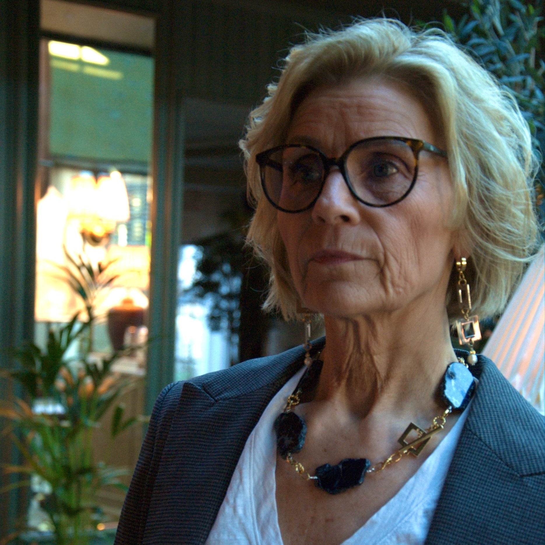 Renaida bär halsband och örhängen från Design by Brandeby – smycken som förenar styrka, själ och tidlös elegans.